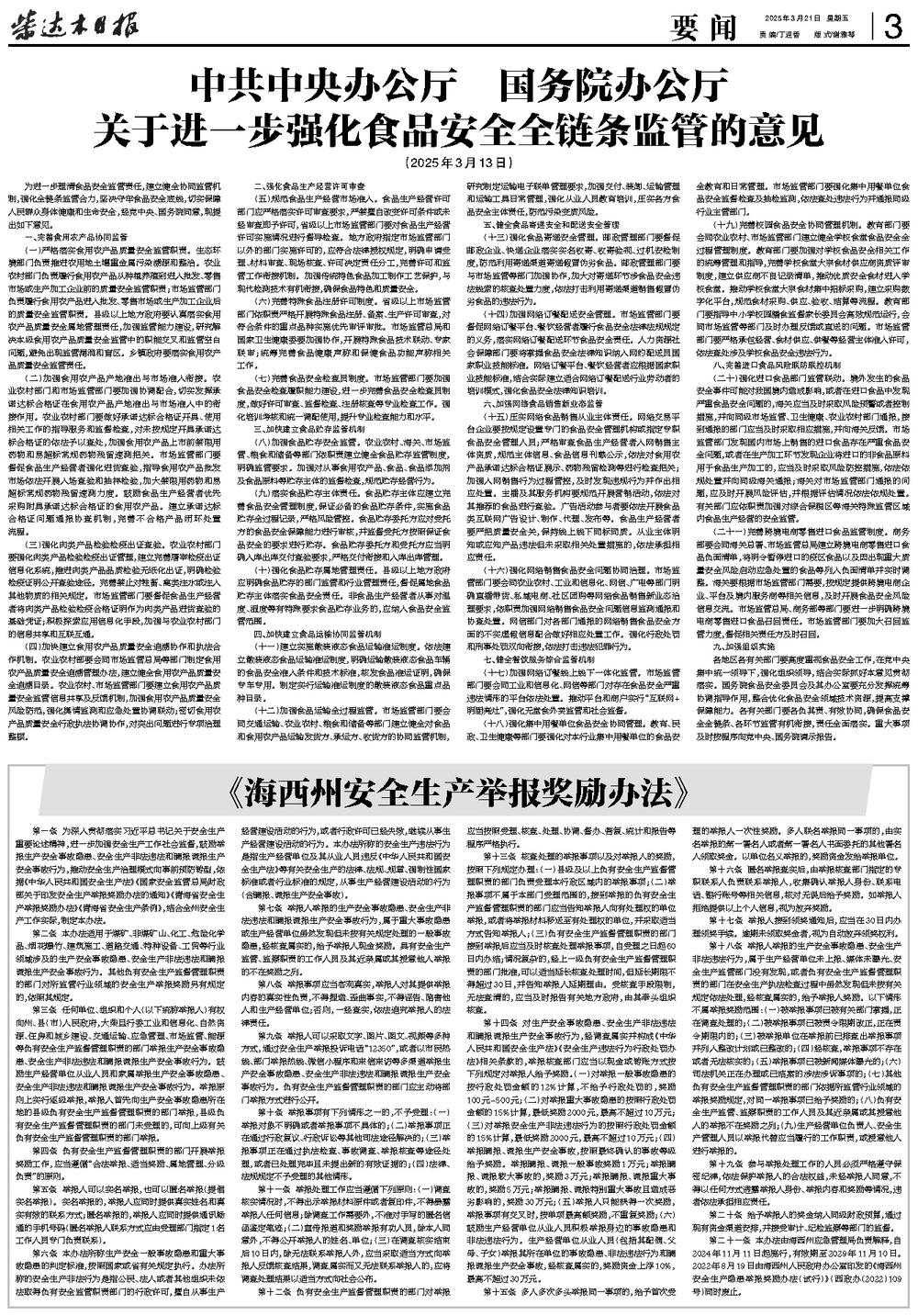 中共中央办公厅 国务院办公厅 关于进一步强化食品安全全链条监管的意见