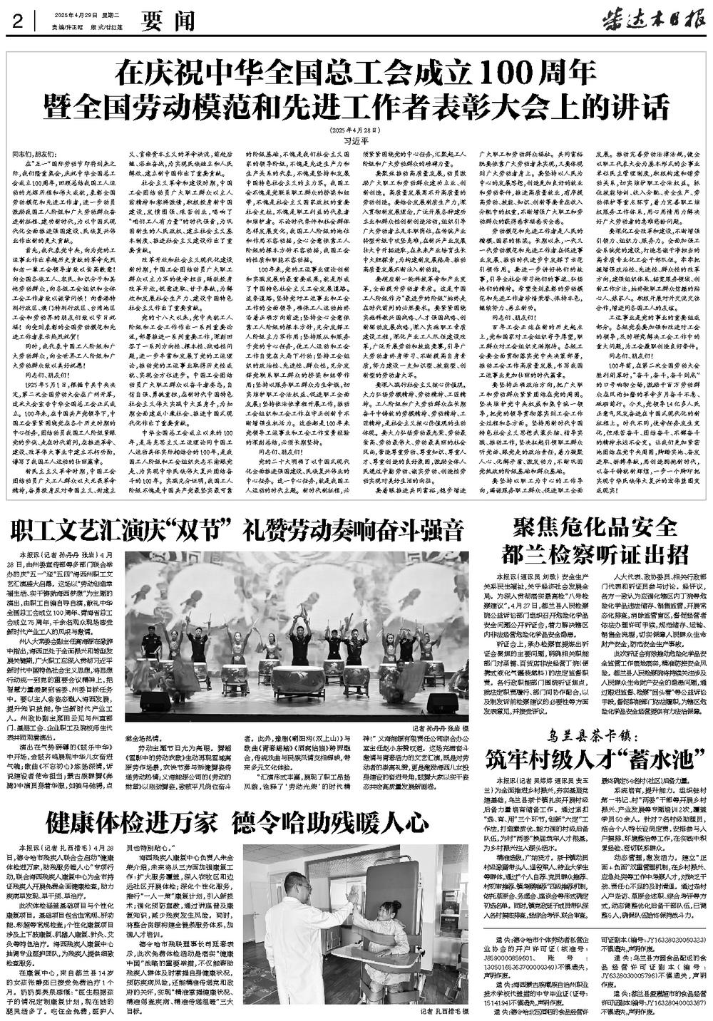 在庆祝中华全国总工会成立100周年 暨全国劳动模范和先进工作者表彰大会上的讲话