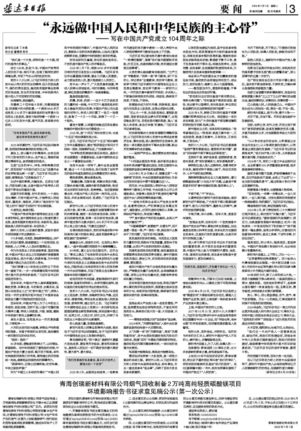 青海创瑞新材料有限公司烟气回收制备2万吨高纯轻质碳酸镁项目 环境影响报告书征求意见稿公示(第一次公示)