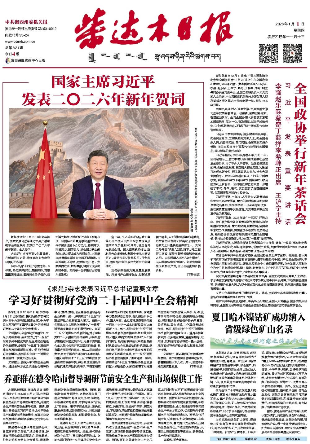 国家主席习近平 发表二〇二六年新年贺词